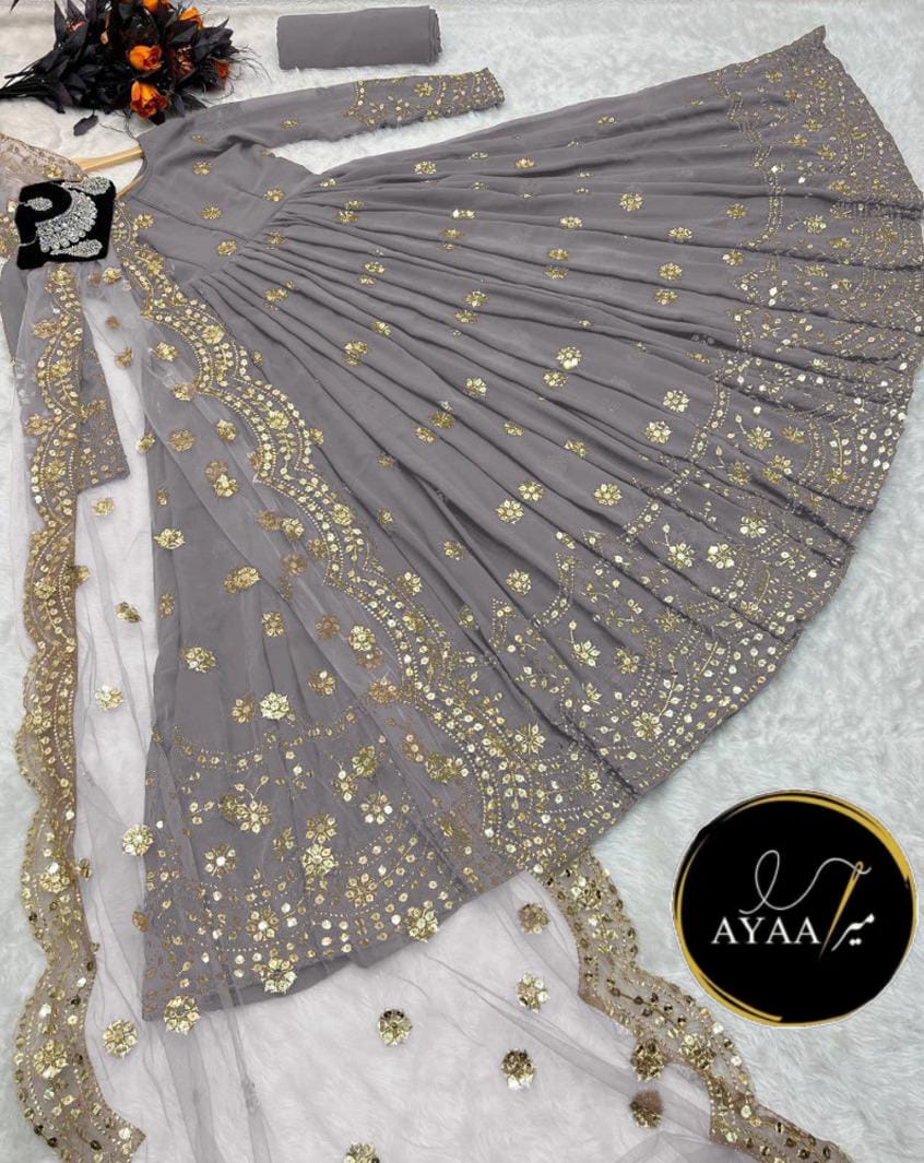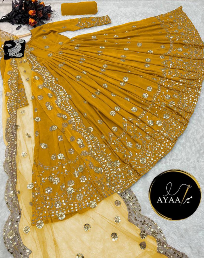 Border Ring Polka Embroidery Maxi with Two Border Embroidery Dupatta 3Pcs